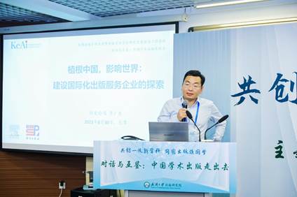 李廣良以“植根世界,影響世界:建設(shè)國際化出版服務(wù)企業(yè)的探索”為主題展開分享。他首先厘清何謂國際化及其必要性,并以科愛公司為案例分享了其在國際化方面的工作,最后總結(jié)了科愛公司“中外母公司鼎力支持、運用雙方平臺進(jìn)行國際傳播、運用數(shù)據(jù)分析支撐公司管理和期刊運營、以服務(wù)客戶為中心、專業(yè)化開展國際國內(nèi)推廣工作、與國際數(shù)據(jù)庫進(jìn)行系統(tǒng)對接以及打造國際化高水平人才隊伍”的模式。