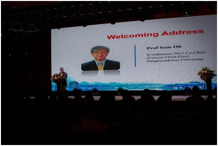 大會開幕式首先由武漢大學校長竇賢康教授致歡迎詞,之后,韓國成均館大學情報科學與數據科學系Sam Oh教授、武漢大學信息管理學院院長方卿教授分別作為iConference2017合作主席致歡迎辭。會議還邀請兩名國外知名專家做大會主題報告,分別是iSchools發(fā)起人之一、美國華盛頓大學前任院長Mike Eisenberg教授,報告主題是:iSchools- Our Time is Now!;科睿唯安(前湯森路透)資深創(chuàng)新總管Jason E. Rollins博士, 他領導的團隊開發(fā)了Web of Science, Scholar One Manuscripts, InCites, and EndNote等數據庫和工具,報告主題是:Web of Science Big Data- Powering Next Generation Discovery & Science of Science.