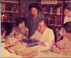 彭斐章先生在櫻頂?shù)馁Y料室為學(xué)生講授《外文工具書》課程