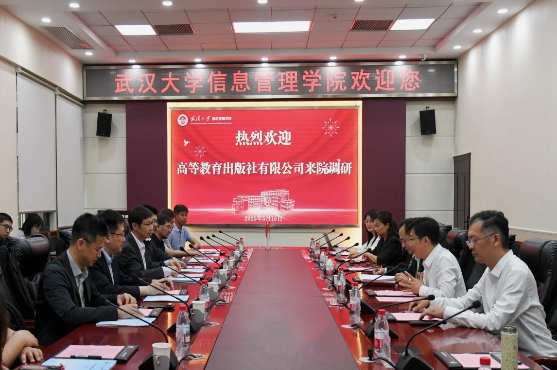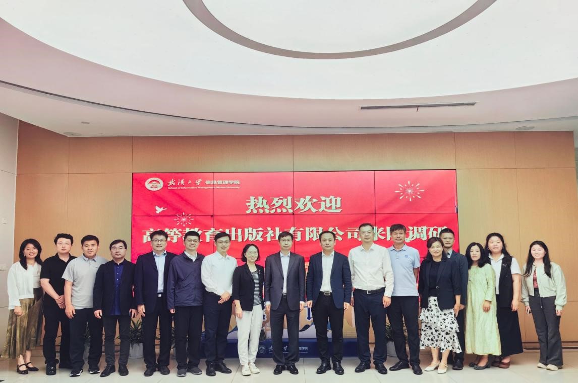 To deepen the industry-university-research-application cooperation between intelligent education and publishing industry, on the afternoon of May 15th, Fangzheng Tan, CPC Deputy Secretary and Editor-in-Chief of Higher Education Press Co., Ltd. (HEP), led a delegation to visit Wuhan University for research. Wei Lu, Vice President of Wuhan University, attended the meeting, which was chaired by Jun Tao, CPC Secretary of the School of Information Management, Wuhan University.