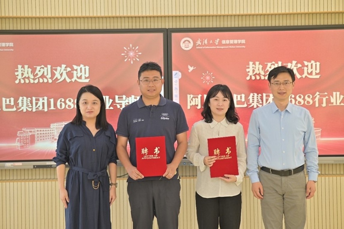 In the appointment ceremony session, Jun Tao issued industry tutor appointment letters to Min Fan and Hongfei Yue, and student representatives presented the school badge souvenirs of Wuhan University to the two industry tutors.