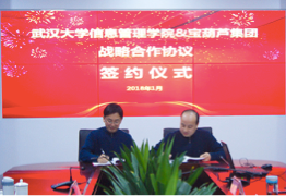 2018年1月9日,武漢大學(xué)信息管理學(xué)院與安徽寶葫蘆信息科技集團(tuán)股份有限公司(寶葫蘆集團(tuán))在寶葫蘆集團(tuán)會議室舉行了《戰(zhàn)略合作協(xié)議》簽約儀式。寶葫蘆集團(tuán)董事長、總裁孫連峰,黨支部書記、副總裁程慶樂,董事、副總裁黃茜,總裁助理趙玥,我院黨委書記付興榮、黨委副書記胡偉、副院長周耀林教授、檔案與政務(wù)信息學(xué)系王平副教授等參加了簽約儀式。