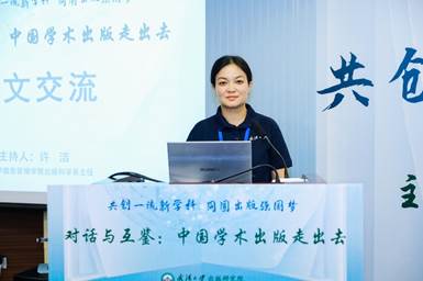 我院出版科學(xué)系主任許潔主持論文交流環(huán)節(jié)。南開大學(xué)新聞與傳播學(xué)院副院長陳鵬分享了他與沈文瀚合作的論文《圖書數(shù)字營銷的新理念和新策略:基于多模態(tài)媒介環(huán)境的應(yīng)用》,合肥工業(yè)大學(xué)文法學(xué)院人文與傳播系副主任王劍飛分享了論文《論中外出版思想的異同、成因及其多維比較》。