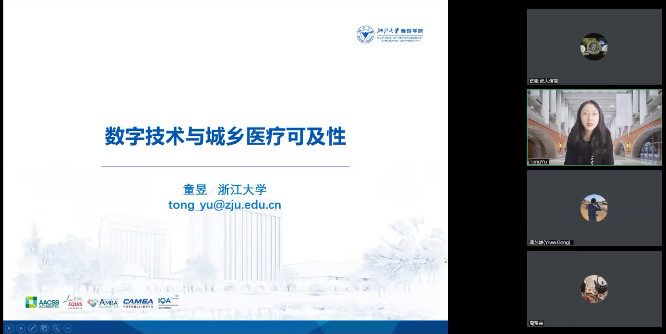 童昱以“數(shù)字技術(shù)與城鄉(xiāng)醫(yī)療可及性”為題,分享了其發(fā)表于信息系統(tǒng)頂級期刊MIS Quarterly的最新的研究成果《Rural-urban healthcare access inequality challenge: transformative roles of information technology》。童昱的研究聚焦城鄉(xiāng)醫(yī)療服務(wù)可及性差異難題,從智慧醫(yī)療應(yīng)用出發(fā),以社會(huì)轉(zhuǎn)型理論和技術(shù)可供性實(shí)現(xiàn)理論為基礎(chǔ),提煉出醫(yī)療數(shù)字技術(shù)(HIT)緩解城鄉(xiāng)醫(yī)療服務(wù)可及性差異的多樣機(jī)制與演化路徑,并對醫(yī)療數(shù)字技術(shù)緩解城鄉(xiāng)醫(yī)療資源分布不均的內(nèi)在機(jī)制進(jìn)行了深入闡述。