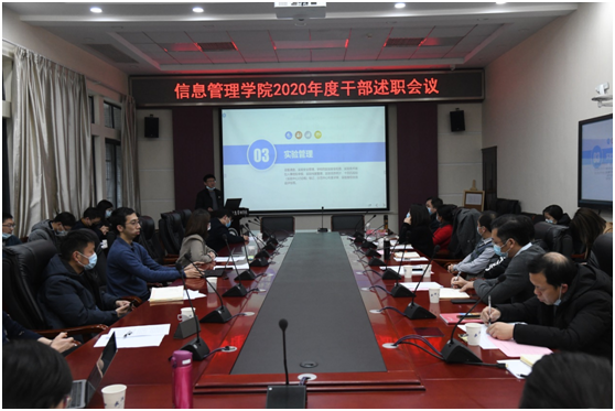 圖書館學(xué)系主任冉從敬、信息管理科學(xué)系主任陸泉、信息系統(tǒng)與電子商務(wù)系主任張敏、研究生教學(xué)管理辦公室主任徐晴、實(shí)驗(yàn)中心主任楊志峰進(jìn)行現(xiàn)場(chǎng)述職。其他二級(jí)單位負(fù)責(zé)人進(jìn)行了書面述職。