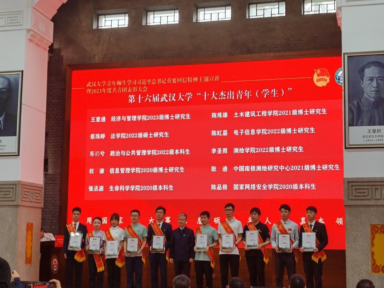 據(jù)悉,武漢大學(xué)第十六屆“武漢大學(xué)十大杰出青年(學(xué)生)”是由共青團武漢大學(xué)委員會主辦的評選表彰活動,旨在聚焦武漢大學(xué)“人才培養(yǎng)年”主題,充分發(fā)揮優(yōu)秀青年學(xué)生的模范帶頭作用,團結(jié)引領(lǐng)廣大青年踔厲奮發(fā)、砥礪篤行。經(jīng)學(xué)院(培養(yǎng)單位)黨委推薦、校團委資格審核、評審小組評選,共有10名學(xué)生入選第十六屆“武漢大學(xué)十大杰出青年(學(xué)生)”。(責(zé)編吳坷)