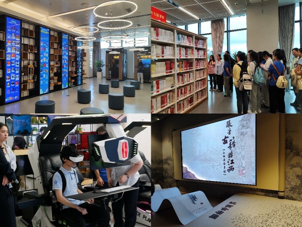 6月1日早上,師生們抵達(dá)江西省圖書館,活動(dòng)正式拉開帷幕。在館員的帶領(lǐng)下,同學(xué)們先后參觀了中文圖書借閱區(qū)、少年兒童區(qū)、“跟著古籍游江西”特色區(qū)域、視聽空間、紅色文化專區(qū)、贛版出版物閱覽區(qū)等區(qū)域。在此過(guò)程中,同學(xué)們不僅領(lǐng)略了虛擬現(xiàn)實(shí)、大數(shù)據(jù)分析和人臉識(shí)別等現(xiàn)代技術(shù)與圖書館各項(xiàng)服務(wù)的完美結(jié)合,還在親身體驗(yàn)中深刻感受到了數(shù)字時(shí)代下圖書館服務(wù)的全面升級(jí)與變革。這次實(shí)地參觀使同學(xué)們對(duì)圖書館員的職責(zé)有了更為明確的認(rèn)識(shí),也激發(fā)了自己在新時(shí)代提升自身職業(yè)能力的決心。
