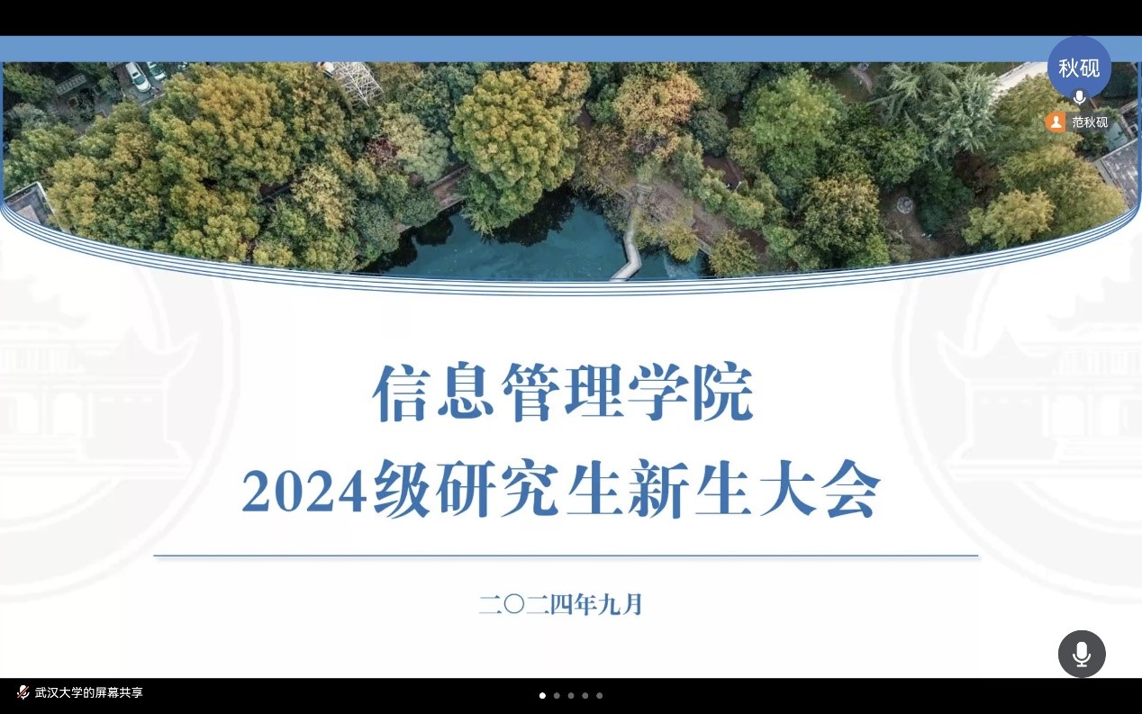 研究生輔導員范秋硯主持會議,她從獎助體系、學術實踐、學生組織和在校安全四個方面介紹了與同學們密切相關的學生事務情況和相關管理要求,囑咐同學們注意校園行車安全,遇到困難及時向導師和學院求助,增強防騙防詐意識,在武漢大學度過平安順利的求學時光。