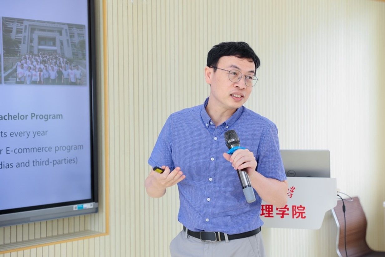 龔藝巍介紹了我院電子商務專業(yè)的人才培養(yǎng)情況。電子商務專業(yè)面向大數(shù)據(jù)與數(shù)字經(jīng)濟時代急需,緊跟數(shù)字商務前沿,重視互聯(lián)網(wǎng)技術(shù)及經(jīng)濟管理專業(yè)知識的教授以及商業(yè)數(shù)據(jù)分析、產(chǎn)品設計技能和數(shù)字化行業(yè)解決方案實施能力的培養(yǎng)。他指出,電子商務專業(yè)通過與商務伙伴合作建立實習平臺,鼓勵學生積極參加中國“互聯(lián)網(wǎng)+”大學生創(chuàng)新創(chuàng)業(yè)大賽等賽事,致力于培養(yǎng)電子商務高水平人才。