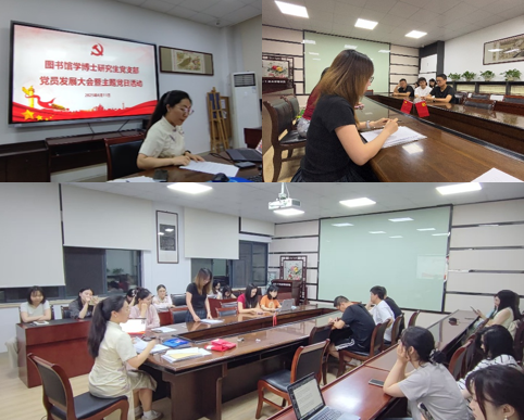 (通訊員柴旭杰、王曾敏)6月11日,學(xué)院圖書館學(xué)博士研究生黨支部開展了畢業(yè)生黨員黨性教育活動,黨支部全體成員參加活動。本次活動主要分為重溫入黨誓詞、學(xué)習(xí)《黨政機(jī)關(guān)厲行節(jié)約反對浪費(fèi)條例》、分發(fā)學(xué)院定制的畢業(yè)生黨員政治生日紀(jì)念卡等三個(gè)部分。