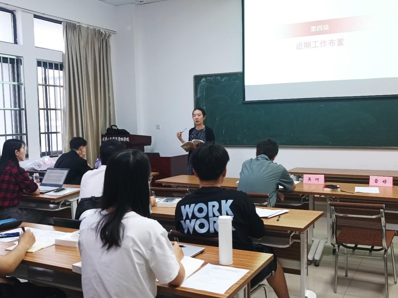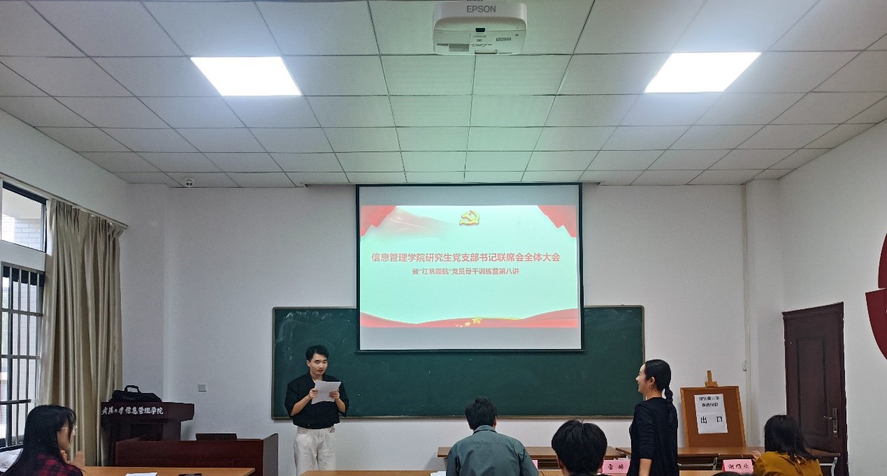 (通訊員李晨睿)為深入學(xué)習(xí)貫徹習(xí)近平總書記重要講話精神,迎接黨的二十大勝利召開,提高各研究生黨支部新任書記的業(yè)務(wù)能力,促進(jìn)各支部間的交流,推動支部建設(shè)取得新成效,9月29日上午,學(xué)院在208會議室舉辦研究生黨支部書記聯(lián)席會議暨“紅帆領(lǐng)航”黨員骨干訓(xùn)練營。院研工辦副主任雷婷、研究生輔導(dǎo)員吳坷、兼職輔導(dǎo)員謝順欣以及研究生黨支部書記聯(lián)席會全體成員參會。聯(lián)席會主席團(tuán)成員陳帥樸主持會議。