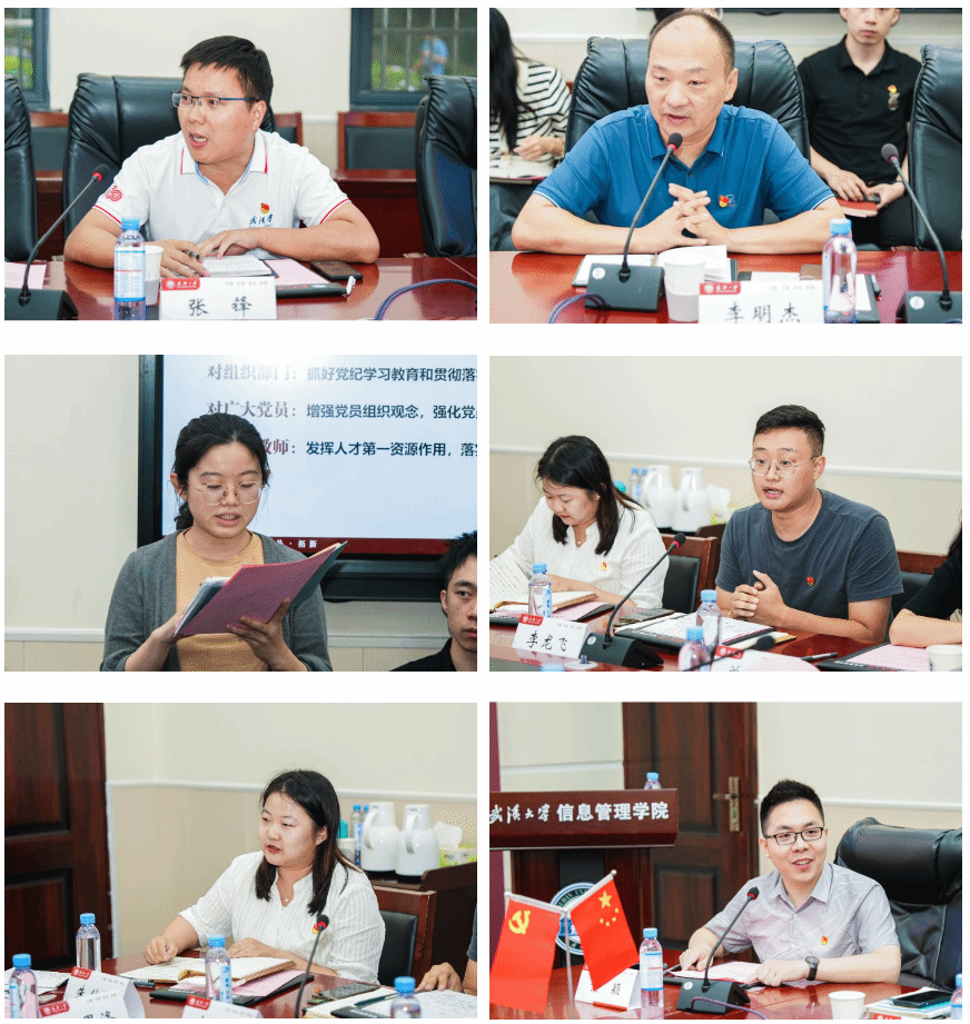 與會人員圍繞專題輔導(dǎo)報告、專題黨課展開討論。黨委組織部辦公室主任張鋒以“受震撼、受啟發(fā)、受警醒”三個關(guān)鍵詞表達(dá)對活動的收獲,提出要通過加強黨紀(jì)學(xué)習(xí)教育,使黨員更好地理解黨的政策方針,增強紀(jì)律意識和責(zé)任感,提高黨組織的戰(zhàn)斗力和凝聚力。我院圖書館學(xué)系教師黨支部李明杰指出,數(shù)字文化建設(shè)與數(shù)據(jù)主權(quán)治理具有重要戰(zhàn)略意義,要通過加強科研創(chuàng)新與國際合作,推動我國數(shù)字文化軟實力的提升;行政教職工黨支部范秋硯提到,各研究生黨支部要深入學(xué)習(xí)貫徹習(xí)近平總書記重要講話和重要指示精神,高質(zhì)量開展黨紀(jì)學(xué)習(xí)教育,將黨建與業(yè)務(wù)深度融合。圖書館學(xué)系博士研究生黨支部書記李龍飛提出要繼續(xù)深入學(xué)習(xí)黨紀(jì)條例,堅定理想信念,踐行“黨建+業(yè)務(wù)+科研”的基層博士支部建設(shè)新模式;碩士研究生黨支部書記朱傳宇表示,將進一步通過學(xué)術(shù)研討、社會實踐、志愿服務(wù)等形式,豐富學(xué)生黨員的教育內(nèi)容,增強黨支部的凝聚力與向心力。